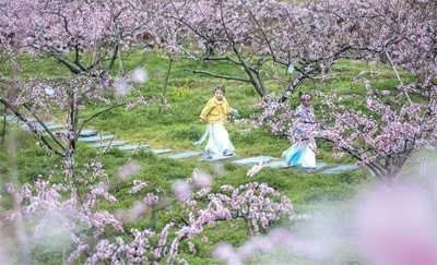 不過(guò),肖田鄉(xiāng)最出彩的還不是朗際古色,而是從小吟村生發(fā)出來(lái)的桃紅色。盡管此刻,小吟村東溪村小組的四百畝黃桃基地,樹(shù)上掛著的還只是星星點(diǎn)點(diǎn)的花苞,但盤(pán)春梅知道,不多時(shí)日,漫山遍野便會(huì)開(kāi)出屬于桃紅的磅礴氣勢(shì)。