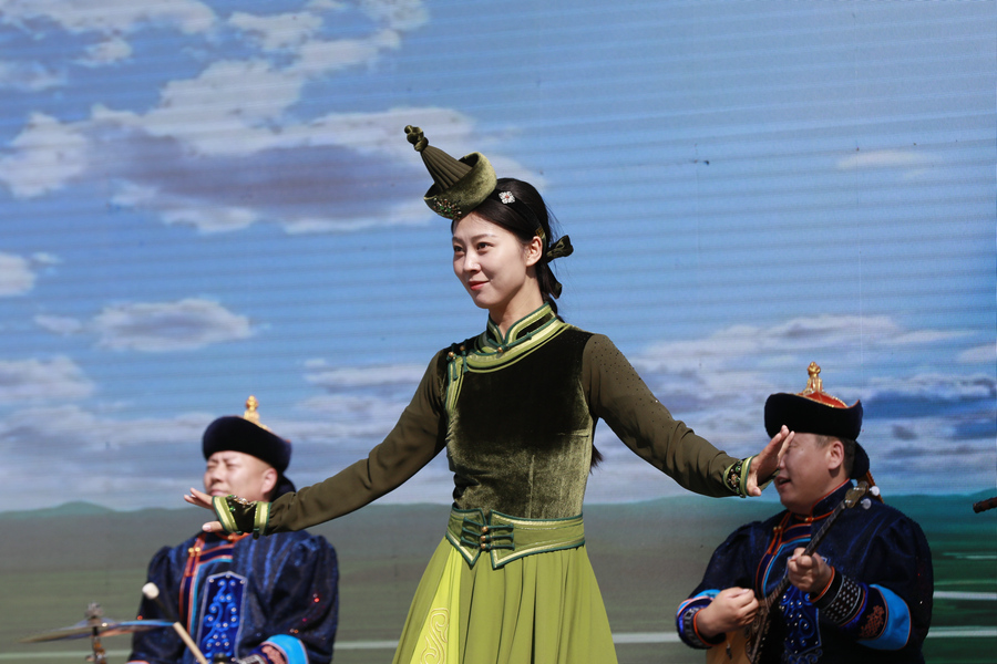 烏蘭牧騎隊(duì)員現(xiàn)場(chǎng)表演 北疆新聞?dòng)浾?張楊攝影