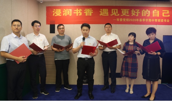 中青班班主任文濤老師對讀書會進行了點評,希望大家“好書不厭百回讀,站在不同立場讀書,便會有不同的體會,希望廣大青年干部進一步學(xué)習(xí),努力踐行新時代黨員干部的使命,增強服務(wù)群眾的本領(lǐng)”。文濤老師以一首詩為讀書會推向高潮,贏得了學(xué)員們的陣陣掌聲。
