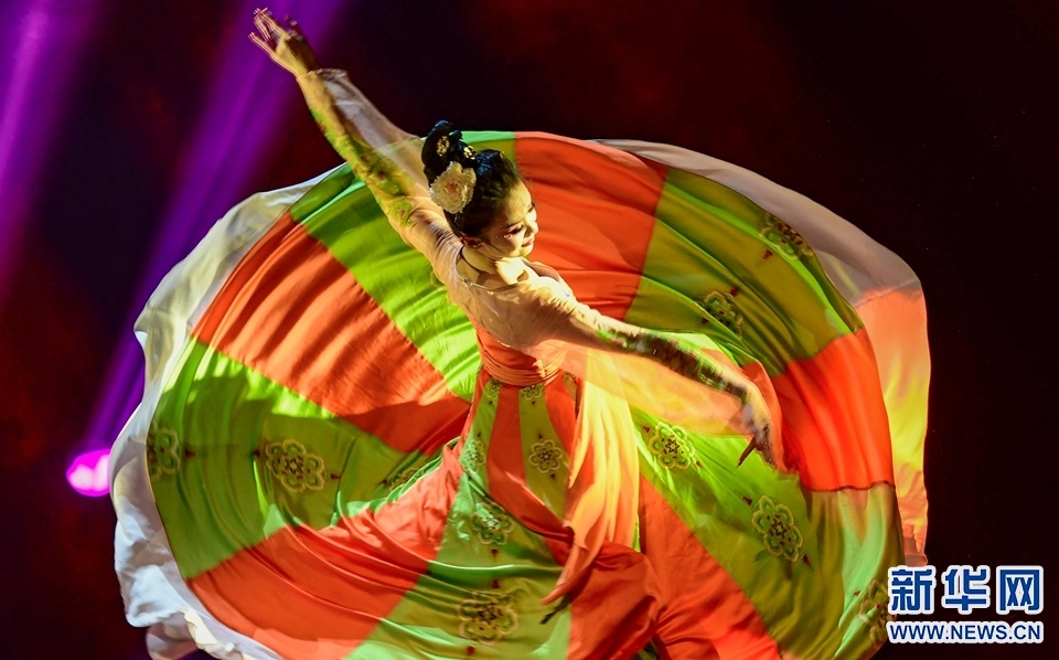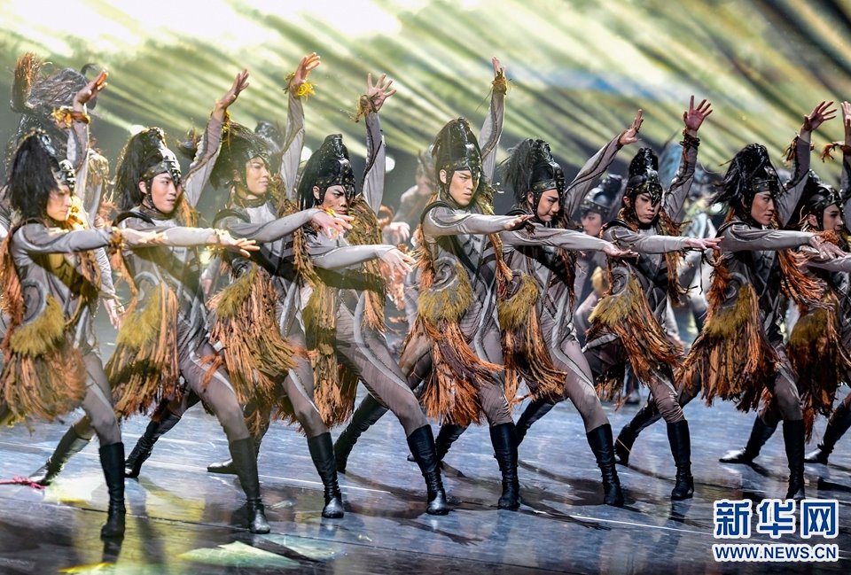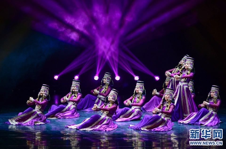 1月12日,演員在2022年內(nèi)蒙古新年舞蹈晚會中表演舞蹈《各族兒女行進在陽光里》。新華網(wǎng)發(fā)(王正攝)