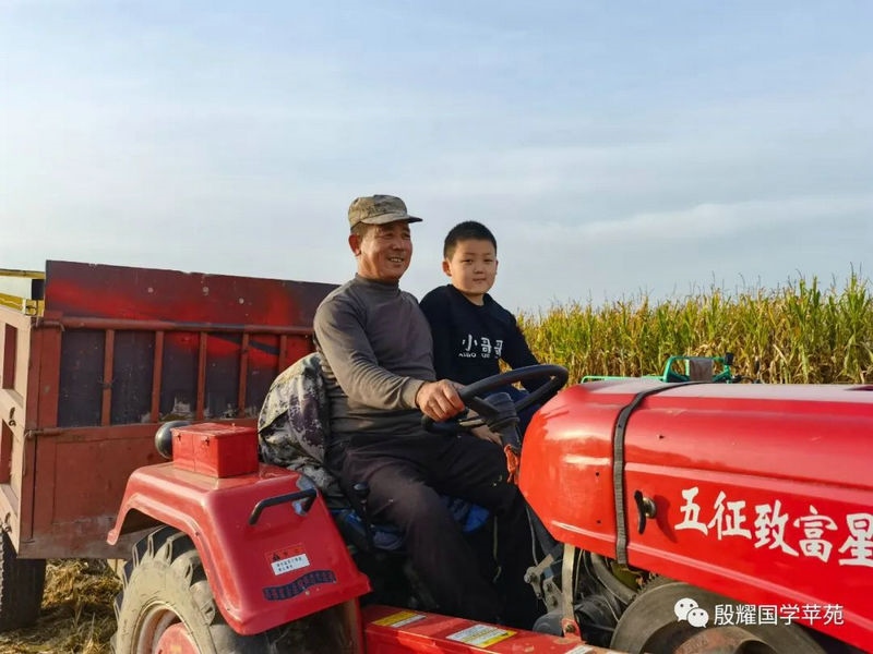 父親讓曈曈接地氣的愿望實(shí)現(xiàn)了,長(zhǎng)得越來越壯實(shí)的曈曈真是打心眼喜歡上了農(nóng)村,喜歡看叔叔大爺們是如何勞動(dòng)的。春天澆地的時(shí)候,他跟上我的發(fā)小利利到地里去,手里拿上一張鐵鍬學(xué)著去攏堰堤;秋收的時(shí)候他爬上了丁補(bǔ)元駕駛的收割機(jī),感受農(nóng)民們收割玉米的喜悅;接羔的時(shí)候,他又鉆進(jìn)利軍家的羊群里,抱著出生沒有幾天的小羊羔,給小羊羔喂牛奶……春節(jié)前的一兩天是他最忙的時(shí)候:一會(huì)跟上大爹貼春聯(lián),一會(huì)跟上茹義大爺掛紅燈,忙得不亦樂乎。前一段時(shí)間回村里他又要跟上利軍大爺出村放羊去,又要跟上茹義大爺去種玉米,在城里他是見識(shí)不到這些的。