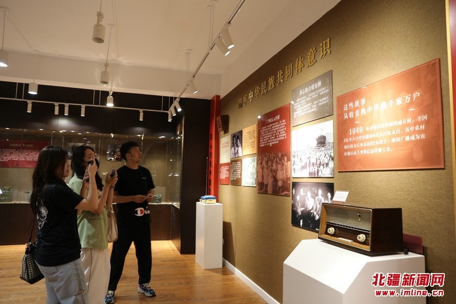 8月17日,游客在內(nèi)蒙古包頭市固陽縣“固陽稒事”美食特產(chǎn)文創(chuàng)街的收音機(jī)收藏館參觀。