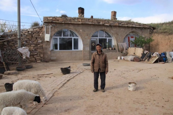 2022年5月15日,呼和浩特市長(zhǎng)城科普學(xué)會(huì)會(huì)員來(lái)到清水河縣城關(guān)鎮(zhèn)銀滾山長(zhǎng)城公園北面的邊墻壕村考察明大邊,在村口聽(tīng)見(jiàn)狗吠,順著聲音走到邊墻人家門前,一只雞站下來(lái)一直看著你,等你走近的時(shí)候才扭著身子慢慢跑開(kāi);你也會(huì)聞到羊糞的味道,它們從大門縫里鉆出來(lái),稀罕地與我們打著招呼。男主人在羊圈里清理羊糞,他抬起頭和我們說(shuō)話,老人耳背,我們連說(shuō)帶比劃才明白:老漢叫呂占全, 今年90歲,老伴叫郝二毛旦 ,81歲,家里只剩老兩口,兒女們都在市里工作。他們二老是邊墻壕村的守護(hù)者,世世代代一直與邊墻為伴。