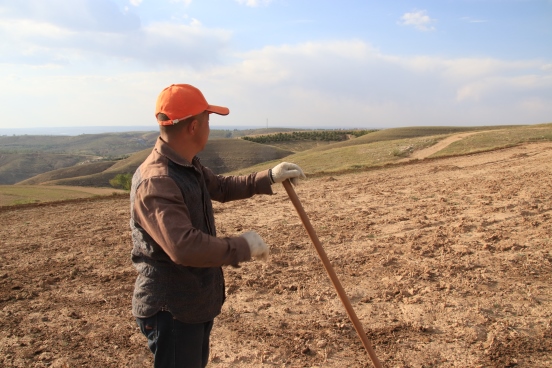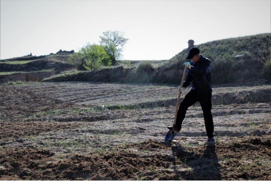 邊墻壕村是個(gè)小村莊,在村口遇見(jiàn)一對(duì)夫婦正在播種,據(jù)介紹全村現(xiàn)有20多戶人家四五十口人,年輕人都出去打工了,剩下些村民老人居多。讓我們?cè)俅伟宴R頭對(duì)準(zhǔn)邊墻下春播的百姓。