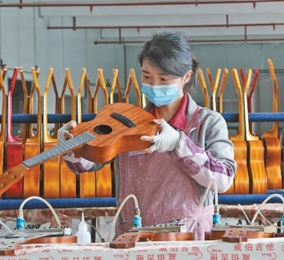從第一家吉他企業(yè)落戶正安吉他文化產(chǎn)業(yè)園起,經(jīng)過10年的發(fā)展,園區(qū)內(nèi)目前年產(chǎn)銷吉他超過600萬把,約占全國吉他產(chǎn)量的1/5。“如果單搞吉他制造,我們的產(chǎn)業(yè)會局限在工業(yè)領(lǐng)域?!闭部h委宣傳部副部長楊安輝說,從2016年起,正安就開始著手吉他文化的培育、推廣和普及,延長吉他產(chǎn)業(yè)鏈。
