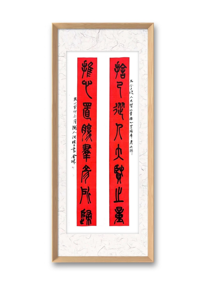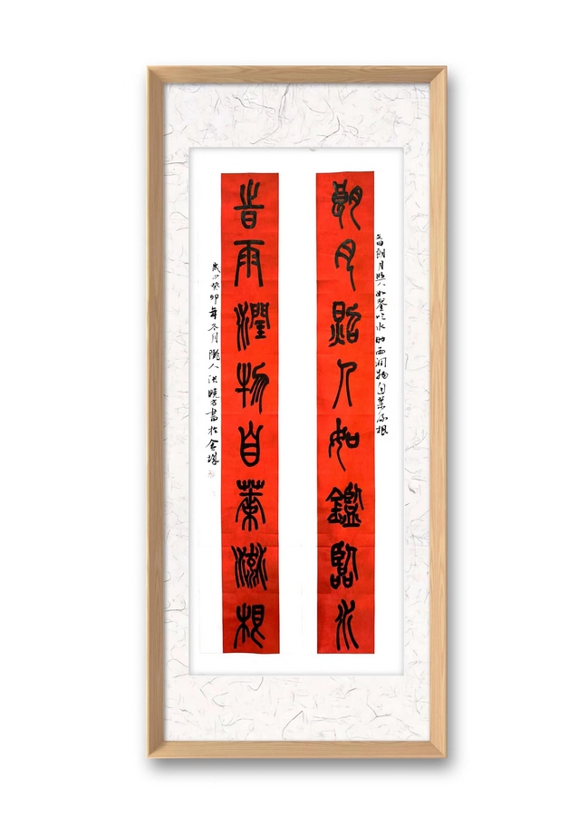 張小方先生在臨古取經(jīng)的同時(shí),也進(jìn)行了大量的臨創(chuàng)轉(zhuǎn)換,以他擅長(zhǎng)的楹聯(lián)形式創(chuàng)作了很多優(yōu)秀作品,他筆下的石鼓文楹聯(lián)不僅保留了傳統(tǒng)文化的韻味,更融入了自己的藝術(shù)感悟和用筆特點(diǎn)。他的作品筆力雄健,氣韻生動(dòng),既有古人的神韻,又有今人的情懷。(完)