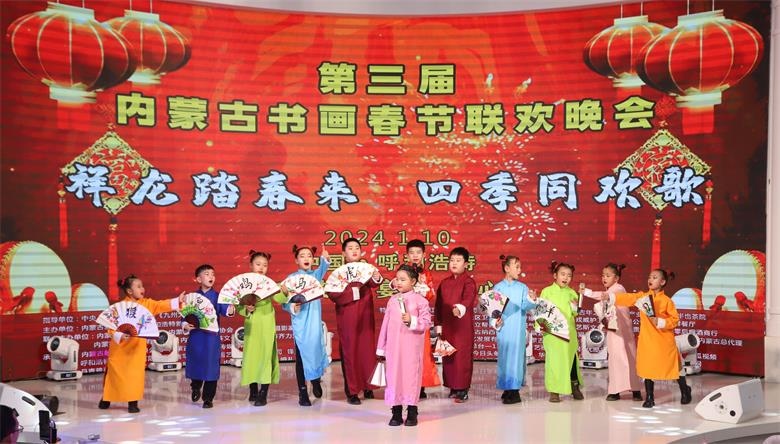 北疆新聞呼和浩特消息 1月10日,以“祥龍?zhí)ご簛? 四季同歡歌”為主題的第三屆內(nèi)蒙古書畫春節(jié)聯(lián)歡晚會在呼和浩特圓滿舉行。本次晚會匯聚了近500位內(nèi)蒙古老中青書畫家、演藝明星、政企嘉賓以及熱愛中國傳統(tǒng)文化的社會各界愛心人士代表,用書畫、歌舞、相聲等豐富多彩的形式,總結2023,展望2024。