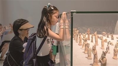 行進(jìn)在博物館中,不時(shí)遇見研學(xué)體驗(yàn)的師生。在老師帶領(lǐng)下,景德鎮(zhèn)昌江區(qū)中心幼兒園的學(xué)生圍在展柜旁,認(rèn)真聆聽講解員的介紹。