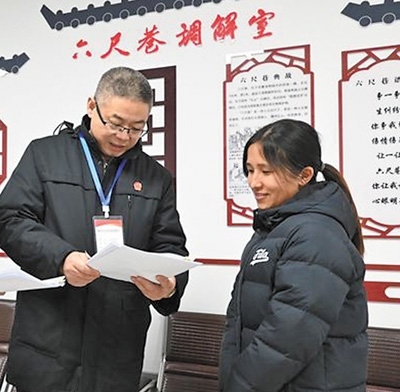 桐城市“六尺巷調(diào)解室”里,法院法官在為居民解決問題。高 明攝