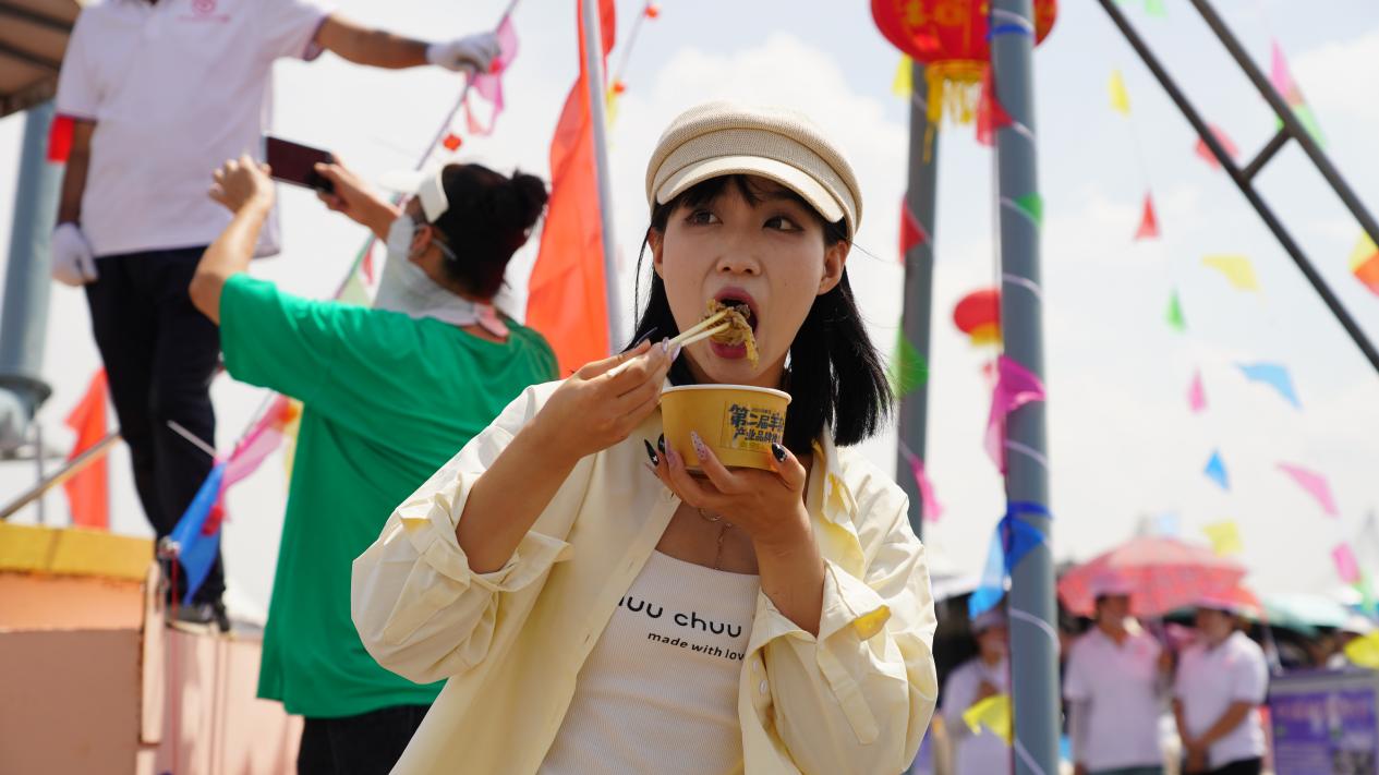 活動(dòng)現(xiàn)場(chǎng),巨型銅鍋穩(wěn)居C位,隨著鍋蓋打開(kāi),熱氣裹挾著濃郁香味沖天而起,紅亮的湯汁中翻滾著羊腸、羊肚,引得圍觀群眾頻頻點(diǎn)贊。