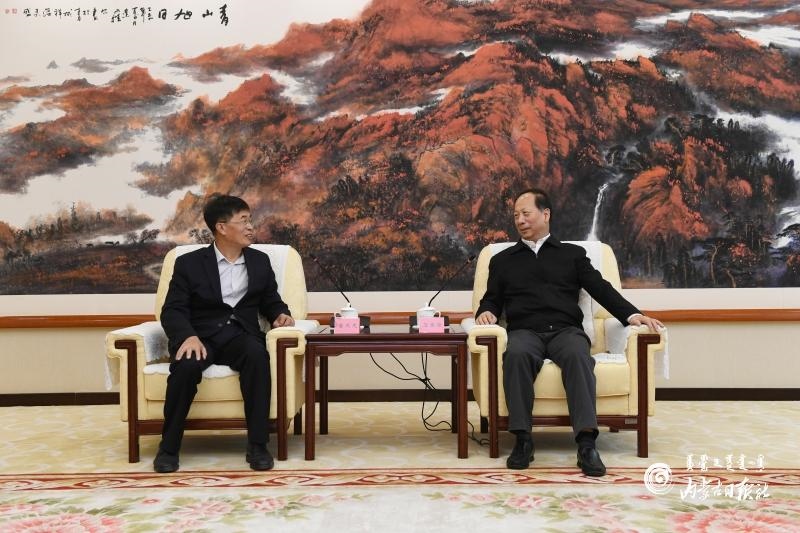 9月27日中午,石泰峰書記會見昆山科騰生物科技有限公司董事長魯茂龍。內(nèi)蒙古日報(bào)記者 袁永紅 攝