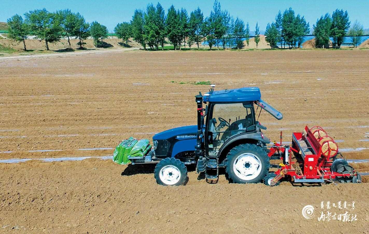 裝有北斗導航系統(tǒng)的拖拉機在起壟、覆膜。