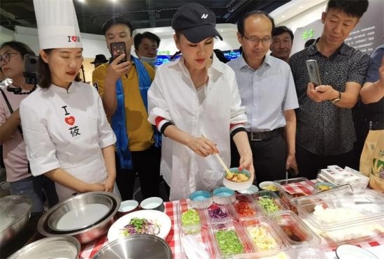 在陰山大漠旅游區(qū),雨后的空氣清新舒爽。期間,烏蘭圖雅欣賞了大漠美景,領(lǐng)略了陰山大漠文化,品嘗了糖麻葉、河套面精等巴彥淖爾特色小吃。“這是我的最愛,吃到了家鄉(xiāng)的味道?!钡谝淮纬缘竭@么筋道的面筋,烏蘭圖雅贊不絕口。通過直播,她還向全國(guó)的朋友傾情推介了紅腌菜、奶制品、蜂蜜等當(dāng)?shù)靥厣a(chǎn)品,讓更多人了解巴彥淖爾的美景美食。