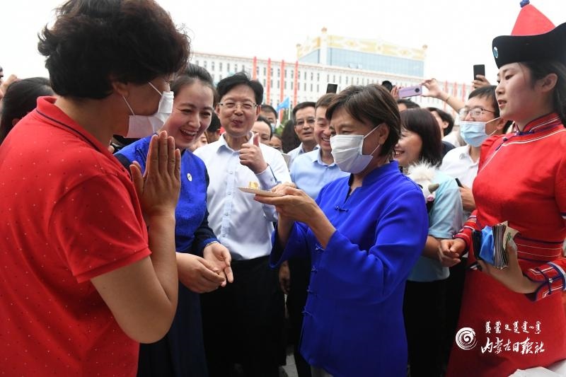 7月25日,自治區(qū)黨委副書記、自治區(qū)主席布小林在調(diào)研2020年內(nèi)蒙古自治區(qū)民族手工藝和文創(chuàng)旅游精品展示活動時來到內(nèi)蒙古味道展示區(qū)。內(nèi)蒙古日報(bào)社融媒體記者 韓卿立 攝