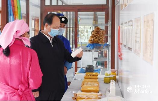 8月11日,石泰峰在興安盟科右前旗烏蘭毛都蘇木,了解蘇金寶力高奶食品合作社生產運營情況。內蒙古日報記者 袁永紅 攝