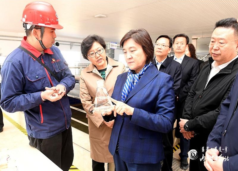 布小林十分關(guān)心沿黃地區(qū)的水資源節(jié)約集約高效利用和生態(tài)保護(hù)建設(shè)。她來到烏海市綠色生態(tài)農(nóng)業(yè)產(chǎn)業(yè)園,走進(jìn)綠農(nóng)永勝農(nóng)民專業(yè)合作社陽光大棚葡萄基地,詳細(xì)了解葡萄種植需水和高效節(jié)水設(shè)施的使用情況;在烏海市啟源供水有限公司,實(shí)地查看凈水工藝流程及針對(duì)黃河水特點(diǎn)采取的處理措施。布小林指出,我區(qū)沿黃地區(qū)大多水資源匱乏,生態(tài)保護(hù)和經(jīng)濟(jì)社會(huì)發(fā)展面臨水資源短缺的剛性約束。抓好水資源節(jié)約集約高效利用,是推進(jìn)黃河流域生態(tài)保護(hù)和高質(zhì)量發(fā)展的重中之重。要牢固樹立節(jié)水意識(shí),堅(jiān)持以水定城、以水定地、以水定人、以水定產(chǎn),合理規(guī)劃人口、城市和產(chǎn)業(yè)發(fā)展,大力發(fā)展節(jié)水產(chǎn)業(yè)和技術(shù),實(shí)施全社會(huì)節(jié)水行動(dòng),推動(dòng)用水方式由粗放向節(jié)約集約轉(zhuǎn)變。要大力發(fā)展循環(huán)經(jīng)濟(jì),結(jié)合技術(shù)改造和產(chǎn)品更新?lián)Q代,組織實(shí)施重大節(jié)水和水循環(huán)利用示范工程,提高水資源重復(fù)利用率。