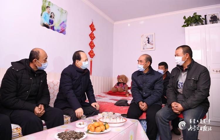 屋外白雪皚皚,屋內(nèi)爐火熊熊。石泰峰首先來(lái)到庫(kù)倫圖村脫貧戶連縻拴家,與老倆口親切交談,深入了解飲水、住房、健康等生產(chǎn)生活狀況,與他們一起細(xì)算收入賬,詢問(wèn)他們對(duì)幫扶工作的滿意度,鼓勵(lì)他們堅(jiān)定信心,在政策幫扶下勤勞致富。隨后,石泰峰驅(qū)車來(lái)到六道溝村,在脫貧戶孟忠忠家,與孟忠忠、胡金柱、王鎖林、韓向林、韓金龍等貧困群眾圍坐在一起嘮起家常,詳細(xì)了解“兩不愁三保障”及飲水安全、產(chǎn)業(yè)發(fā)展等情況。得知他們雖然都是因病、因殘致貧,但生產(chǎn)生活都有保障,而且不等不靠、自我發(fā)展的心勁兒很足,石泰峰說(shuō),脫貧路上一個(gè)都不能少、一戶都不能落,今年是脫貧攻堅(jiān)戰(zhàn)最后一年,也是全面建成小康社會(huì)收官之年,看到你們不但脫了貧,而且信心滿滿,很有志氣和骨氣,我很放心。幸福是奮斗出來(lái)的,希望大家在政策幫扶下繼續(xù)奮斗,共同努力脫貧致富過(guò)上好日子。石泰峰要求當(dāng)?shù)馗刹恳虻刂埔?、精?zhǔn)施策,接續(xù)推進(jìn)全面脫貧與鄉(xiāng)村振興有效銜接。