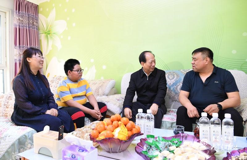 在海拉爾區(qū)神寶小區(qū),石泰峰與自治區(qū)勞模于景斌拉起家常,詳細了解他十幾年如一日堅守生產(chǎn)一線學技術、練本領、搞創(chuàng)新的先進事跡。石泰峰說,實踐出真知,只要肯鉆研、行行出狀元,新一代的工人和廣大勞動者要向勞模學習,弘揚勞模精神,充分發(fā)揮有知識、懂技術、善創(chuàng)新的優(yōu)勢,不斷在工作崗位上創(chuàng)造新的業(yè)績、作出更大貢獻。在天驕家園小區(qū),石泰峰與老黨員祁寶良相談甚歡,他一邊翻看老照片和回憶錄,一邊與老人共同回顧崢嶸歲月。石泰峰說,老黨員老同志的革命經(jīng)歷是我們黨寶貴的精神財富,我們要多給年輕人講一講,讓他們銘記光榮革命歷史,珍惜今天幸福生活,更加奮發(fā)有為地建功新時代。石泰峰叮囑老人保重身體,祝福老人健康長壽。