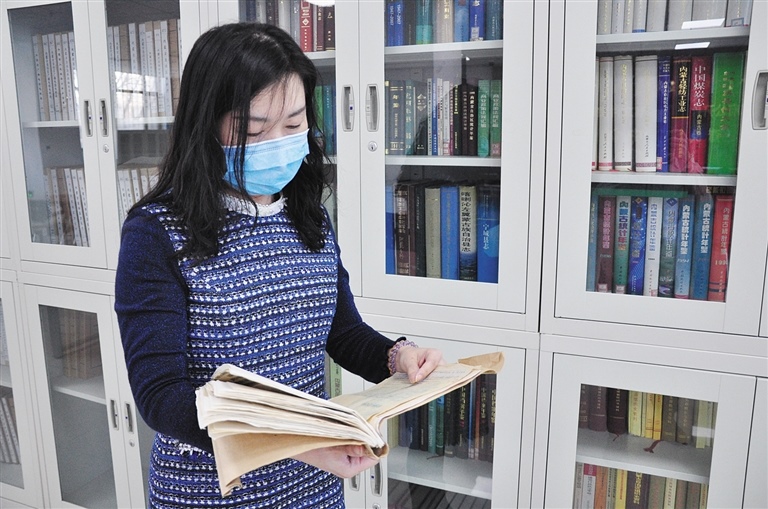 內蒙古自治區(qū)檔案館保管利用部副主任師念君查閱《告蒙古同胞書》。見習記者 袁寶年 攝