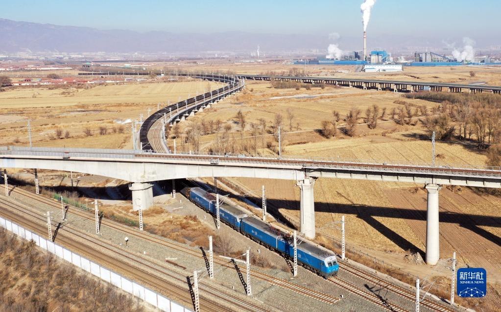 “萬噸煤列”從呼和浩特出發(fā),向東駛去。(苗絲雨,2021年11月23日攝)