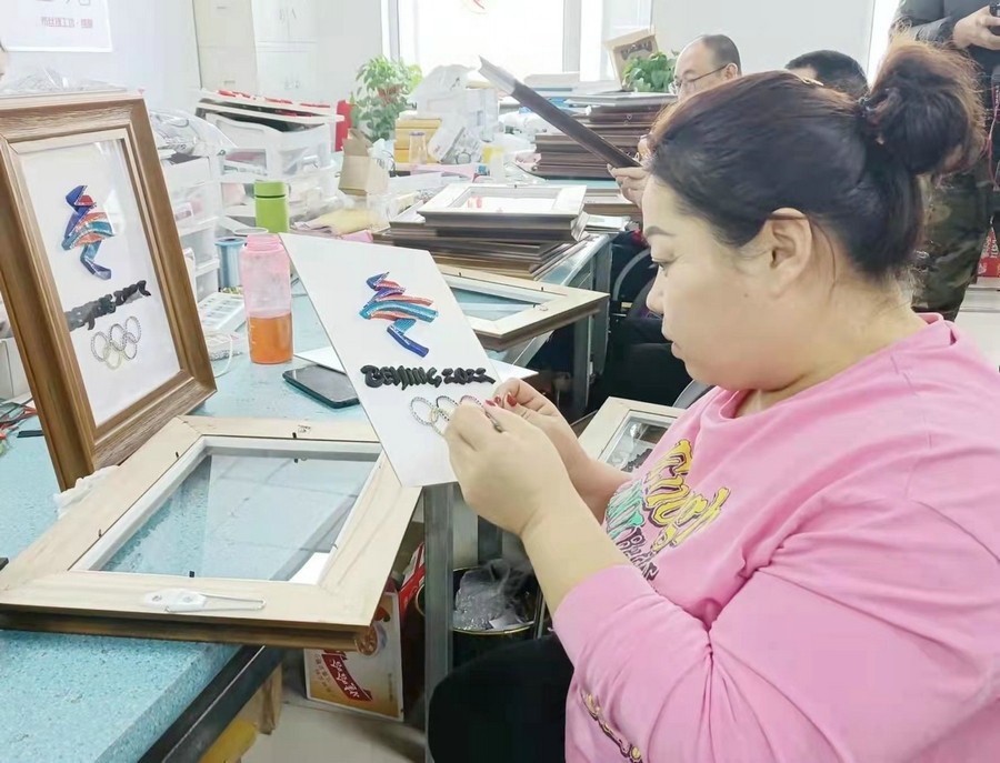 呼和浩特市殘聯(lián)相關(guān)負責(zé)人介紹,用盤扣工藝制作的北京冬奧會、冬殘奧會會徽,是將此工藝與服裝脫離開來,以裝飾畫的形式展現(xiàn)。中式盤扣具有紐帶和橋梁意義,借此表達內(nèi)蒙古殘疾人對北京冬奧會和冬殘奧會的關(guān)注,也讓內(nèi)蒙古殘疾人堅韌不拔、自強不息的精神以這個作品為紐帶傳播到世界各地。