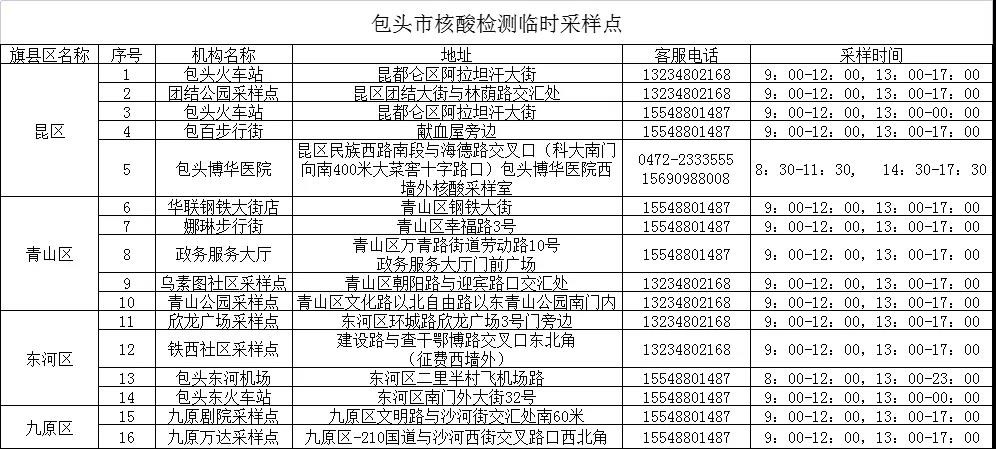 相關(guān)公示:包頭市24小時(shí)核酸采樣檢測(cè)機(jī)構(gòu)和臨時(shí)采樣點(diǎn)公示