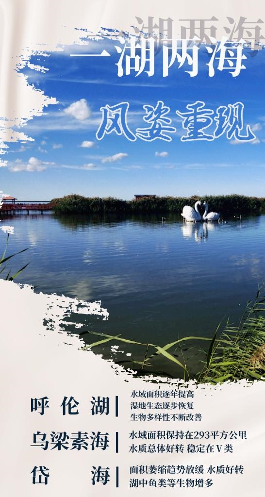 烏梁素海發(fā)生的變化,是內(nèi)蒙古生態(tài)治理的一個縮影。內(nèi)蒙古地處祖國北疆,其生態(tài)狀況如何,不僅關(guān)系全區(qū)各族群眾生存和發(fā)展,而且關(guān)系華北、東北、西北乃至全國生態(tài)安全。多年來,內(nèi)蒙古將筑牢我國北方重要生態(tài)安全屏障,作為必須擔(dān)負(fù)起的重大政治責(zé)任、必須始終銘記于心的“國之大者”,久久為功推進(jìn)治理,“十三五”時期污染防治攻堅(jiān)戰(zhàn)階段性目標(biāo)任務(wù)圓滿完成。在水生態(tài)綜合治理方面,過去5年,呼倫湖水域面積逐年提高,濕地生態(tài)逐步恢復(fù),生物多樣性不斷改善;岱海面積萎縮趨勢放緩,水質(zhì)也在好轉(zhuǎn),湖中魚類等生物增多;察汗淖爾治理工作也全面推開。