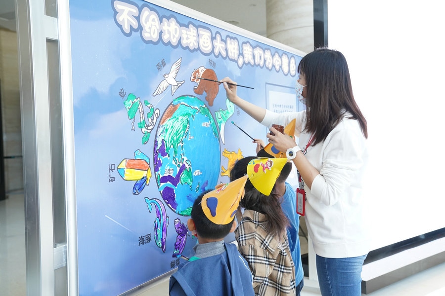 現(xiàn)場開展了“大自然在說話”“恐龍與我們,兩代地球居民的長談”“不給地球畫大餅,我們?yōu)樗钡纫幌盗兄黝}科普活動。在“為地球著色”活動中,參與者每人一筆為地球涂上“他”眼中地球的顏色,定格最美地球畫面;在“大自然在說話”活動中,向公眾免費開放的《生物大滅絕》科普課堂為聽眾講述了在地球生命演化過程中動物、植物的出現(xiàn)、五次生物大滅絕等自然知識;在“恐龍與我們,兩代地球居民的長談”活動中,參觀者通過體驗在放大鏡下修復三葉蟲、恐龍化石等活動了解古生物發(fā)掘、修復知識。
