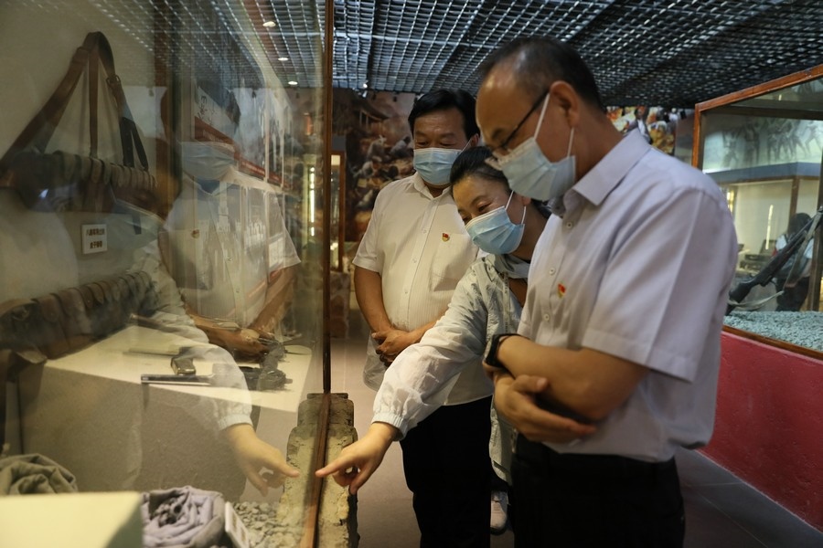 在大青山抗日革命史紀(jì)念館內(nèi),一幅幅真實的戰(zhàn)斗圖片,一件件珍貴的歷史文物,一幕幕感人的革命場景,生動詮釋了革命先烈堅如磐石的紅色信仰,將大家?guī)Щ氐侥嵌纹D苦卓絕、浴血榮光的革命歲月,全體黨員干部接受了一次深刻的黨性教育和靈魂洗禮。