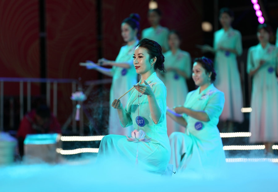晚會(huì)在群舞《盛世歡歌》中拉開序幕,《民族融合》《國(guó)風(fēng)秋韻》和《璀璨之夜》3個(gè)篇章,歌手烏蘭圖雅、豪圖、敖源等為大賽助力演出,精彩的歌舞表演、時(shí)尚的服裝走秀,為現(xiàn)場(chǎng)觀眾帶來一場(chǎng)視聽盛宴。小鎮(zhèn)姑娘和包頭市民齊聚一堂,共享榮耀時(shí)刻,在大合唱《包頭歡迎你》中,頒獎(jiǎng)晚會(huì)落下帷幕,第二屆內(nèi)蒙古小鎮(zhèn)姑娘大賽圓滿收官。