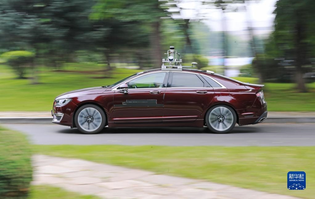 2021年7月9日,在沈陽(yáng)市渾南區(qū)東軟軟件園,自動(dòng)駕駛汽車(chē)在封閉道路上進(jìn)行行駛測(cè)試。新華社記者 楊青 攝