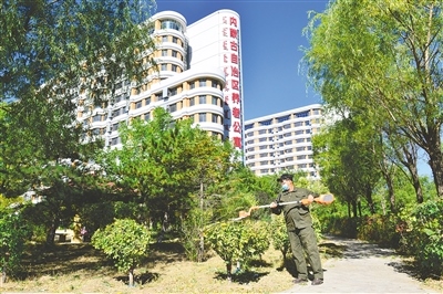 9月23日上午,物業(yè)工作人員在自治區(qū)示范性養(yǎng)老公寓院內(nèi)進(jìn)行綠化維護(hù)。內(nèi)蒙古日?qǐng)?bào)社融媒體記者 安寅東攝