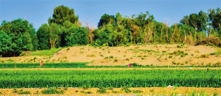 曾經(jīng)的沙地經(jīng)過(guò)治理,已經(jīng)成為耕地和林地。