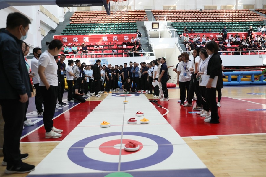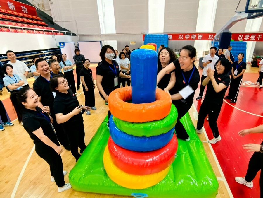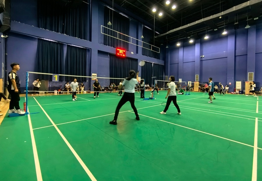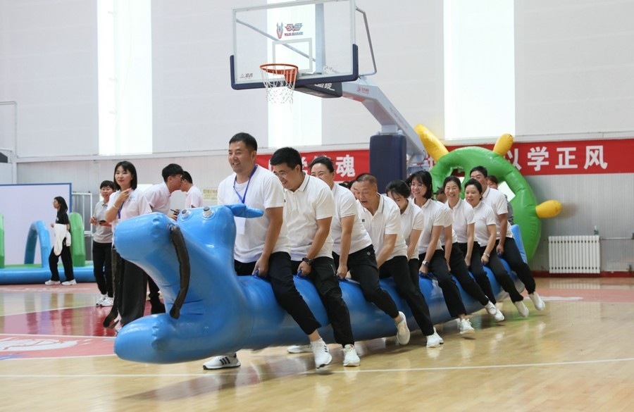 在隨后進行的趣味運動會中,依次進行了“陸地冰壺”“龜兔賽跑”“漢諾塔”等比賽項目。而在此前一天,羽毛球等項目也已開賽。賽場上,運動員們團結一心,奮力拼搏。觀眾席上,“最強氣氛組”組成強大的啦啦隊,為參賽選手們吶喊助威、加油鼓勁,共同凝聚團隊的精神,一起分享比賽的快樂。