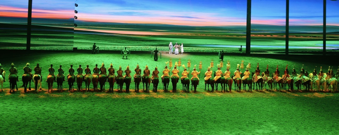 濃墨重彩的林海,遼闊無邊的沙漠,金燦燦的胡楊林,9月的內(nèi)蒙古正是夏季的繁茂與秋季的華彩交融之際,處處斑斕、極致秋色的自然美景,讓人流連忘返。而在呼和浩特市上演著一幕壯闊絕美的獨特“美景”,讓人充分體會到濃濃的草原風情和壯闊的奮斗歷程,這就是經(jīng)典馬舞劇——《千古馬頌》。