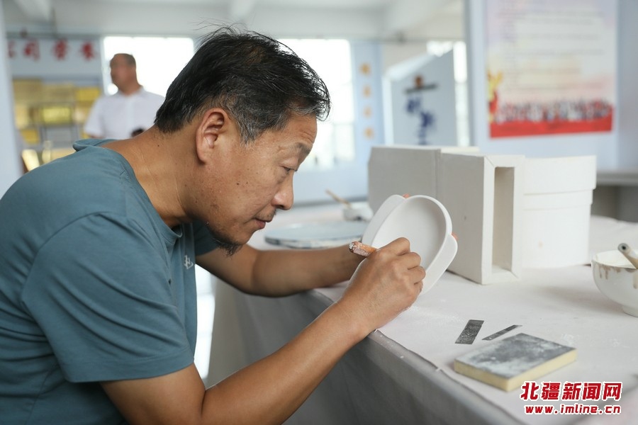 7月26日,內(nèi)蒙古興和縣龍興陶瓷產(chǎn)業(yè)園,工作人員正在加工制作陶瓷產(chǎn)品。