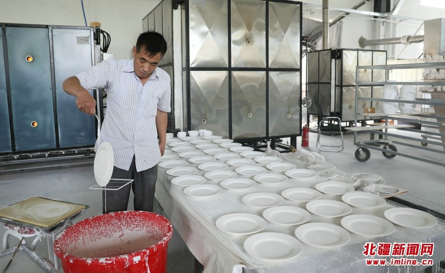 壓胚、印坯、曬坯、繪畫、上釉、燒制……經(jīng)過一道道嚴格的工序,溫潤細膩,精美絕倫,獨具特色的餐具、茶具、酒具以及各類藝術陳設陶瓷,呈現(xiàn)在人們面前。
