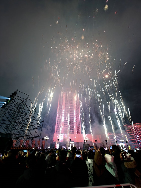 1月1日零時,隨著新年鐘聲的敲響, 內(nèi)蒙古自治區(qū)呼和浩特市數(shù)萬人在新華廣場倒數(shù),迎接2024年到來。