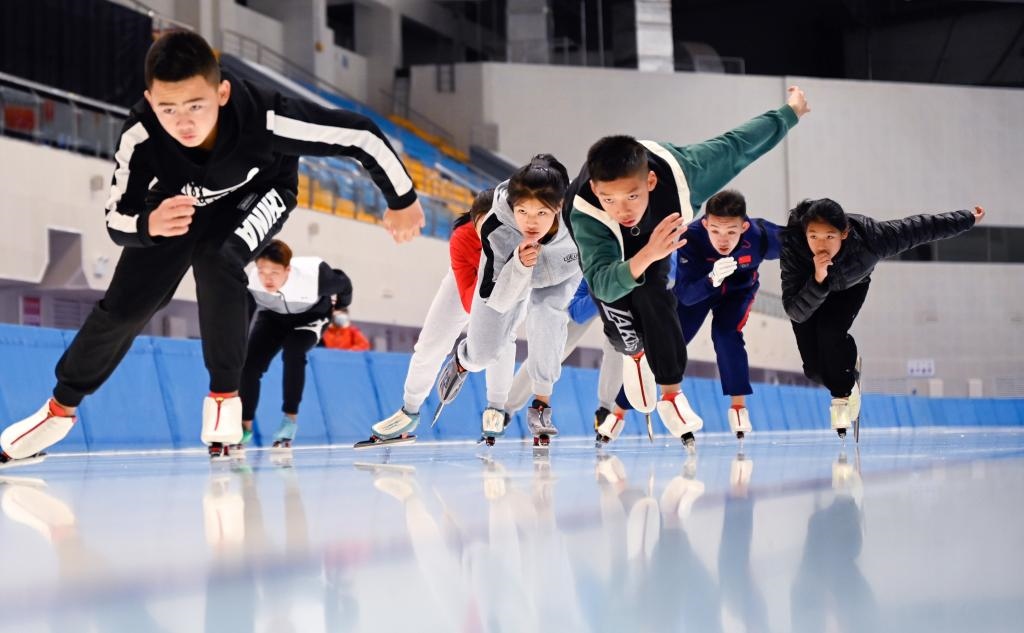??呼倫貝爾學(xué)院冰雪運(yùn)動專業(yè)學(xué)生正在進(jìn)行滑冰訓(xùn)練。新華社記者 賀書琛 攝