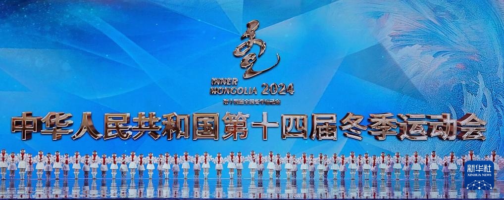 ??2月17日,中華人民共和國第十四屆冬季運動會會旗在開幕式上入場。新華社記者 楊晨光 攝