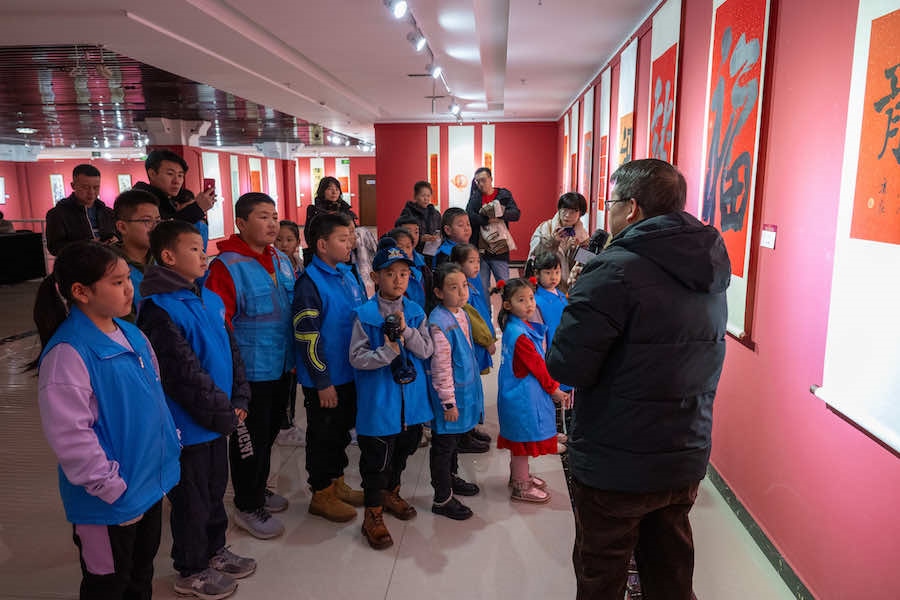 活動現(xiàn)場,20余名小朋友在家長的陪同下,參觀了“藝美北疆 遇見青城”——呼和浩特市百福迎春賀歲作品展”和“藝美北疆 新春納?!薄厣夏?nbsp;水墨集中國書畫名家邀請展,小朋友在呼和浩特美術(shù)館老師的講解下,了解了春節(jié)貼“福”字是我國民間由來已久的風(fēng)俗,“?!蔽幕侵腥A優(yōu)秀傳統(tǒng)文化的組成部分,激發(fā)了小朋友們對傳統(tǒng)文化的熱愛。