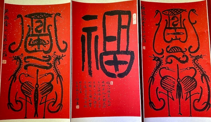 “媽媽我又認識了一個‘?!郑瓉碓?jié)也要貼‘?!?,還要貼吉祥的畫,我還要和玉兔一起吃元宵?!?歲的陳昭穎參觀完百福迎春賀歲作品展后因為認識一個“福”字開心地說。