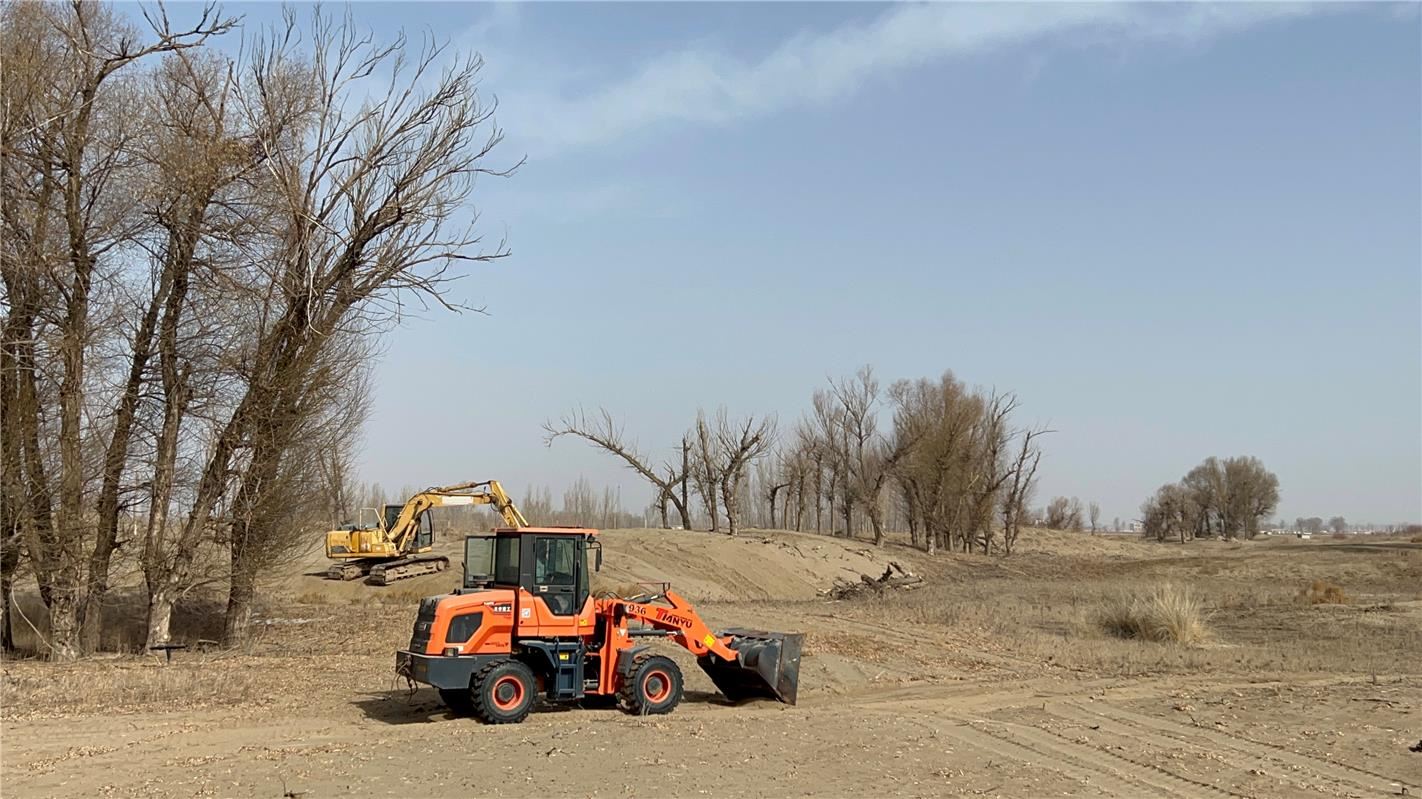 2月28日,春意萌動,萬物生長。進(jìn)入巴彥淖爾市臨河區(qū)國營新華林場,一幅紅彤彤的對聯(lián)——“生態(tài)優(yōu)先綠色發(fā)展勇?lián)姑晃菲D難”映入眼簾,與兩旁高高掛起的紅燈籠相映成趣。另一邊,數(shù)臺大型機(jī)械往來穿梭,開始了今年的植綠工作。