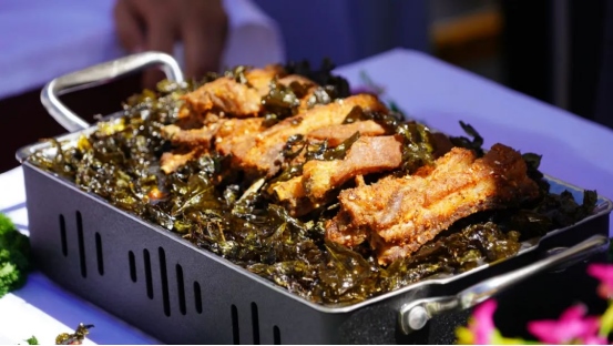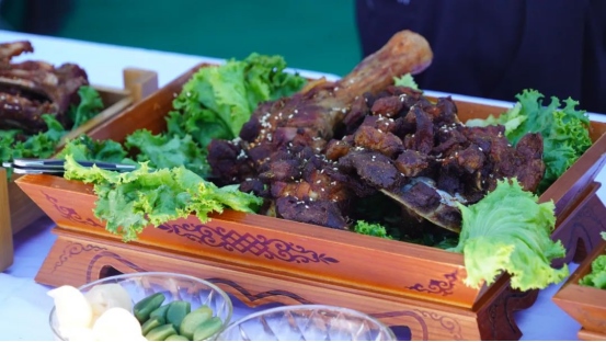 烤全羊、手抓肉、肚包肉……活動(dòng)現(xiàn)場,參賽選手們各顯神通,用他們精湛的廚藝為大家呈現(xiàn)了一場全羊盛宴。來自不同地區(qū)的36道羊肉系列菜,現(xiàn)場烹飪制作并供嘉賓、游客品嘗,評委從每道菜品的食材、烹飪方法、口味色澤、擺盤設(shè)計(jì)等方面入手,進(jìn)行現(xiàn)場打分排名。一道道精心烹飪的美食香飄四座,激發(fā)了現(xiàn)場觀眾的食欲。大家紛紛圍上前來,爭相品嘗。“羊肉還有這么多的做法,真是讓人大開眼界?!薄疤贸粤耍蛉舛己荃r美!”現(xiàn)場游客無一不發(fā)出贊嘆。