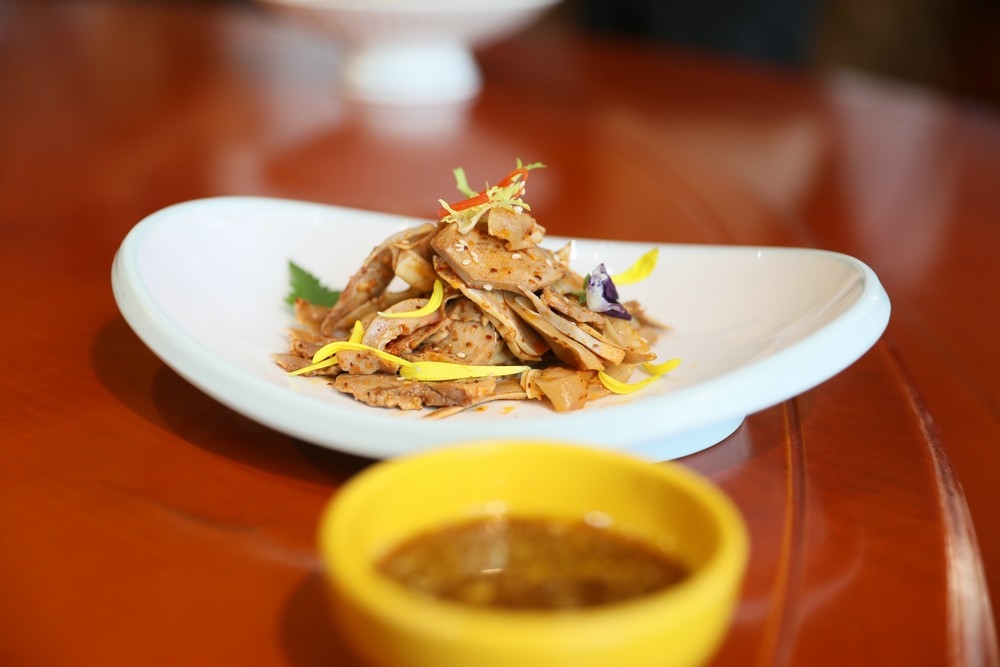 首次亮相的羊雜宴席分涼菜、熱菜、湯羹、主食等共18個(gè)菜品,包括櫻桃松露羊肝、扎蒙花拌耳舌、香辣手撕羊心、王爺精片蹄花、胡麻鹽干山尾、養(yǎng)生羊腦藜麥粥 、羊隨布拉塔番茄、草原風(fēng)味毛血旺 、松茸焗羊雜煲、茶香伴侶雙寶 、黃柿子肚絲湯 、鮮羊肝披薩餅等,而首次登上羊雜宴席的羊雜燒麥也是菜品中的一大亮點(diǎn)。伴隨著國(guó)家級(jí)烹飪大師、羊雜宴席領(lǐng)銜主廚岳俊杰的介紹,“沒(méi)想到”“好吃”之類(lèi)的驚嘆成為品鑒會(huì)的高頻詞。