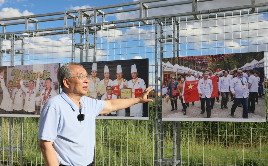 7月28日,第14屆《食色世界》攝影大展,在四子王旗格根塔拉草原旅游中心開展。圖為本次攝影展策展人、中國攝影家協(xié)會(huì)會(huì)員、中國人像攝影學(xué)會(huì)副會(huì)長(zhǎng)、內(nèi)蒙古攝影家協(xié)會(huì)名譽(yù)主席郎立興正在介紹展品。