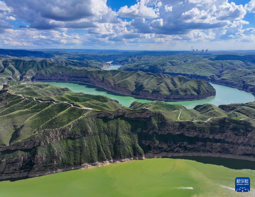 ??這是8月12日拍攝的老牛灣北側(cè)的一處黃河峽谷(無(wú)人機(jī)照片)。