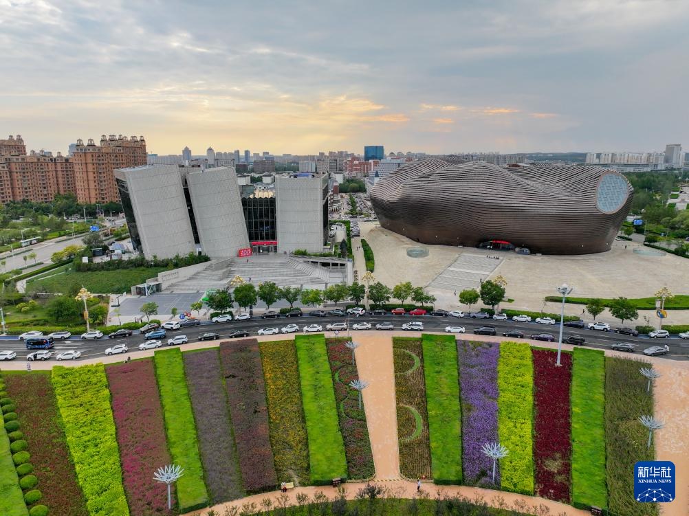 ??這是9月19日拍攝的鄂爾多斯市圖書(shū)館與博物院(無(wú)人機(jī)照片)。