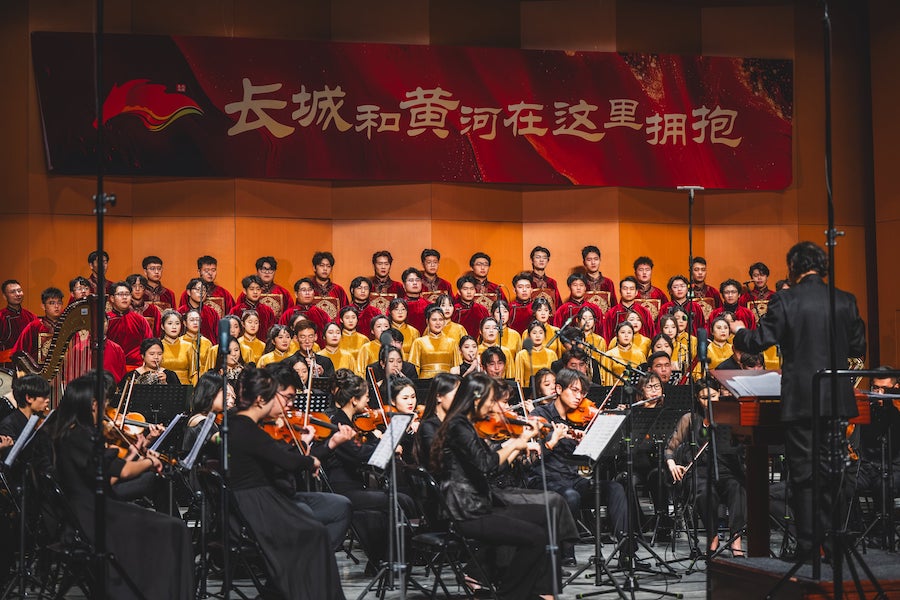整場演出以“相擁”“相依”“相融”三個篇章的宏大敘述,深情表達(dá)“黃河兩岸是我家,長城內(nèi)外是故鄉(xiāng)”,通過對民族優(yōu)秀音樂曲目的創(chuàng)新、對經(jīng)典藝術(shù)作品的再現(xiàn),展示北疆大地長城文化、黃河文化的深厚底蘊(yùn)和鮮明特質(zhì)。