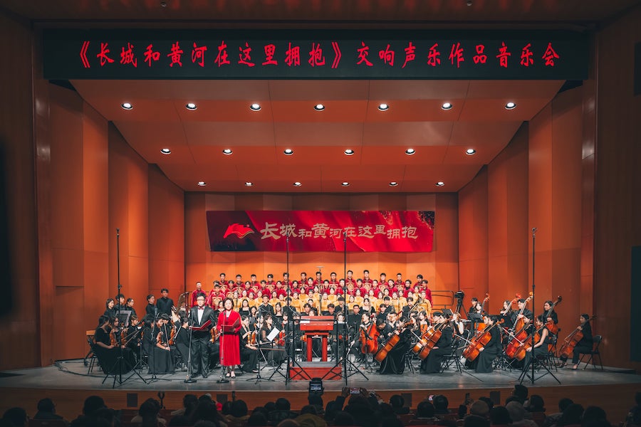 12月20日晚,“長城和黃河在這里擁抱”交響聲樂作品音樂會在內(nèi)蒙古藝術(shù)學(xué)院新華校區(qū)演藝廳華美上演。